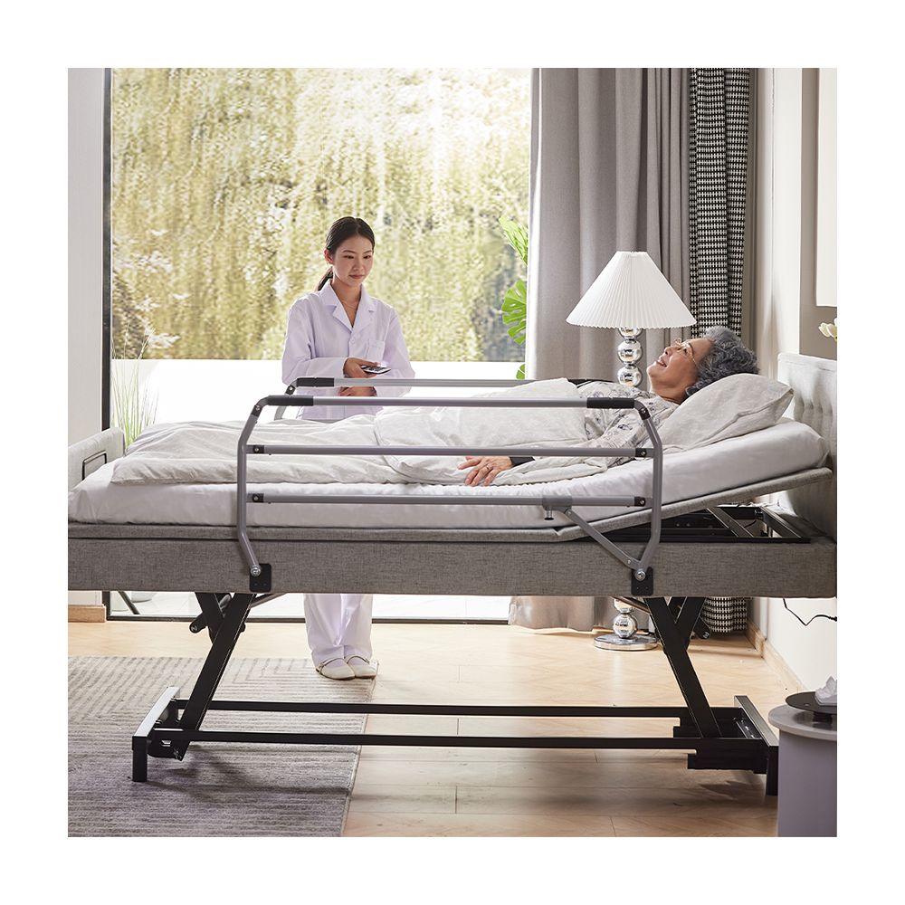 - Thanh chắn an toàn: Đã đề cập ở trên, nhưng cần nhấn mạnh lại tầm quan trọng của chúng để ngăn người già rơi khỏi giường, đặc biệt là vào ban đêm hoặc khi họ mất phương hướng.