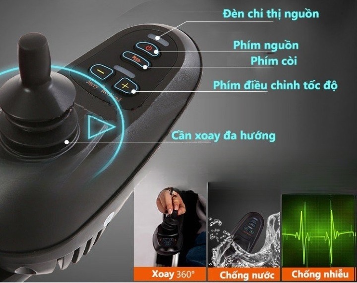 Cần gạc xoay 360 độ có điều khiển tốc độ, điều khiển lái xe, điều hướng, thắng dừng, khẩn cấp, có thêm còi xe