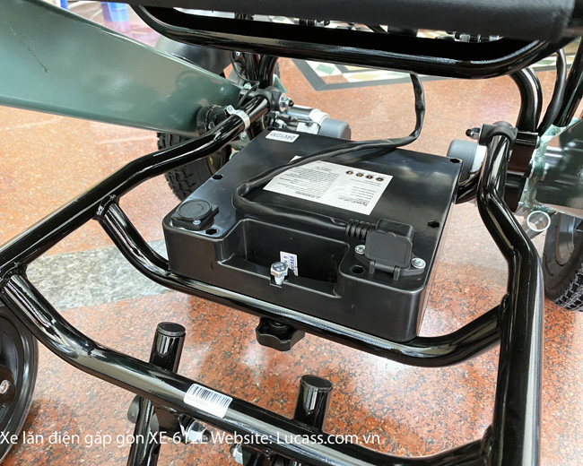 Pin Lithium hiện đại: Dung lượng 24V-12AH, đi được quãng đường tới 25km, sạc nhanh 4-5 giờ, bền hơn ắc quy truyền thống.