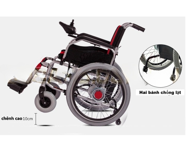 Ngoài ra, xe còn được trang bị vành lăn phụ, cho phép sử dụng như xe lăn tay khi cần – tăng tính linh hoạt trong mọi tình huống.