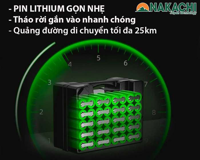 5. Pin Lithium cao cấp – quãng đường đến 25km
