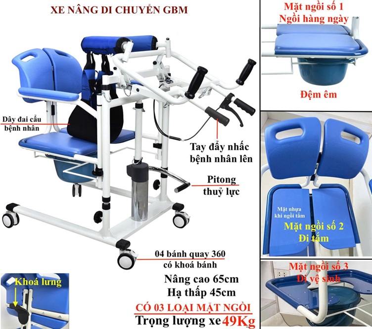 Dùng để nâng hạ , di chuyển đi tắm, đi vệ sinh và có bô